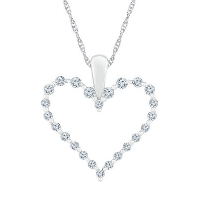 Womens 1/2 CT. T.W. Natural White Diamond 10K White Gold Heart 18 Inch Pendant Necklace