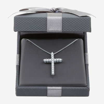 Womens 1/2 CT. T.W. Lab Grown White Diamond Sterling Silver Cross 18 Inch Pendant Necklace