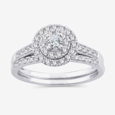 Write a ReviewAsk a Question2729231ColorproductsizeWomens 1/2 CT. T.W. Natural White Diamond 10K Gold Round Side Stone Halo Bridal Set12345678Add to CartProduct DetailsShipping & Returns Shop The LookReviewsQuestions & AnswersAdd To Cart