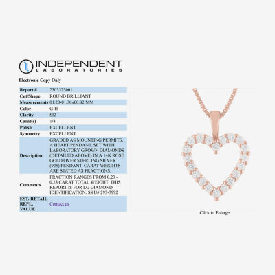 Write a ReviewAsk a Question2937992product(G-H / Si1-Si2) Womens 1/4 CT. T.W. Lab Grown White Diamond 14K Rose Gold Over Silver Heart 18 Inch Pendant Necklace12345678Add to CartProduct DetailsShipping & Returns Shop The LookReviewsQuestions & AnswersAdd To Cart