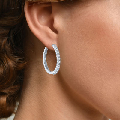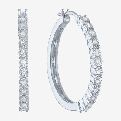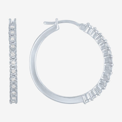Womens 1/4 CT. T.W. Natural White Diamond Sterling Silver 26mm Hoop Earrings