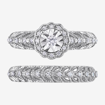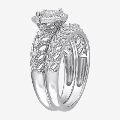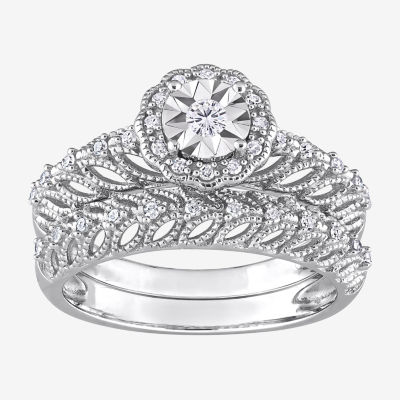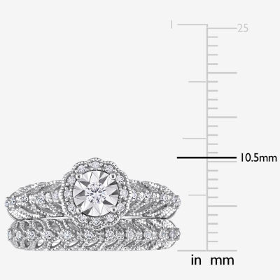 Womens 1/4 CT. T.W. Natural White Diamond Sterling Silver Round Halo Bridal Set