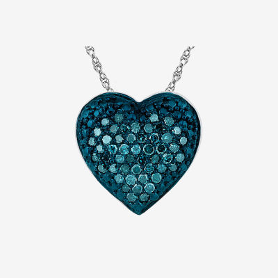 Womens 1/5 CT. Natural Blue Diamond Sterling Silver Heart 18 Inch Pendant Necklace
