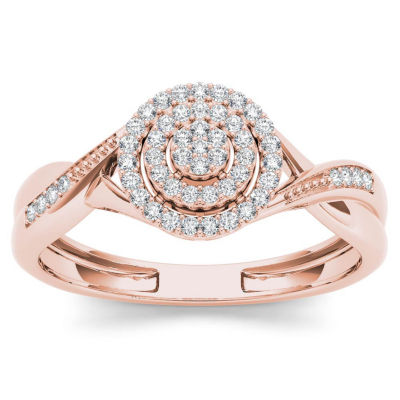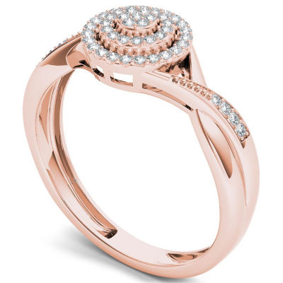 Womens 1/6 CT. T.W. Natural White Diamond 10K Gold Round Halo Engagement Ring