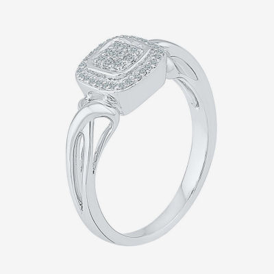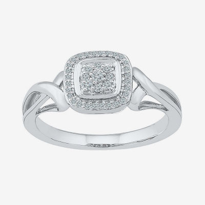 Womens 1/6 CT. T.W. Natural White Diamond Sterling Silver Cushion Engagement Ring