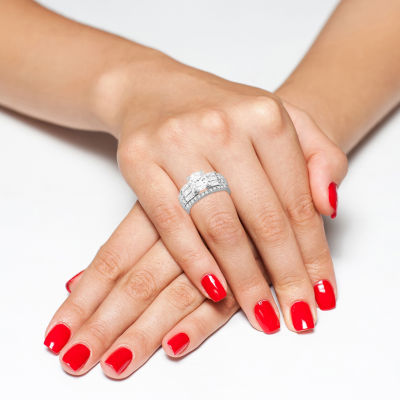 Womens 1 CT. Cubic Zirconia Sterling Silver Round Bridal Set