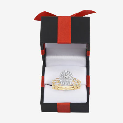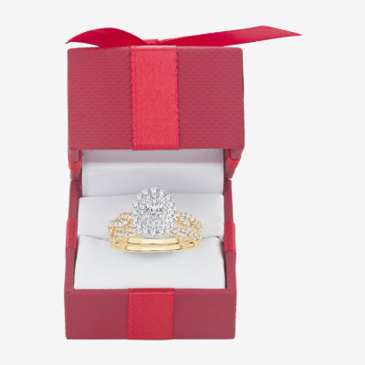 Womens 1 CT.T.W. Natural Diamond 10K or 14K Gold Oval Halo Bridal Set