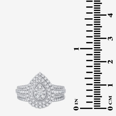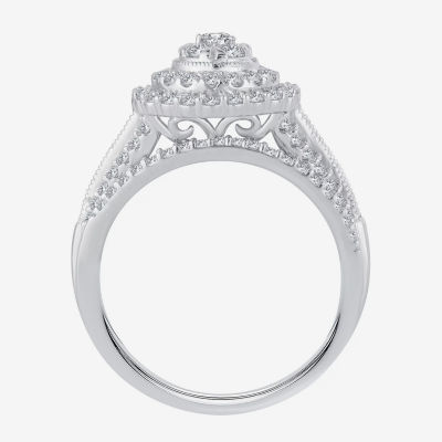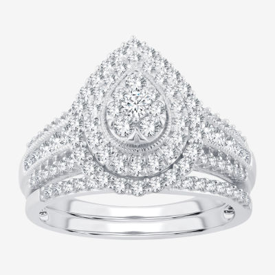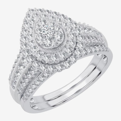 Womens 1 CT.T.W. Natural Diamond 10K or 14K White Gold Pear Halo Bridal Set