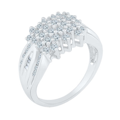 Womens 1 CT. T.W. Natural White Diamond 10K White Gold Cluster Cocktail Ring
