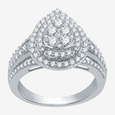 Womens 1 CT. T.W. Natural White Diamond 10K White Gold Pear Engagement Ring