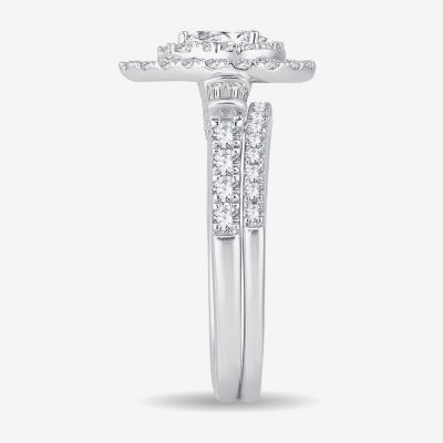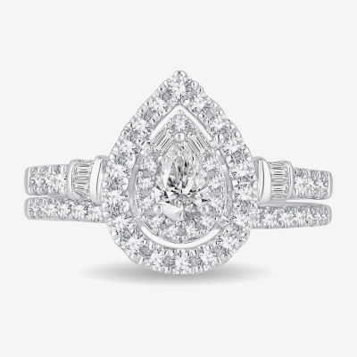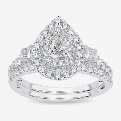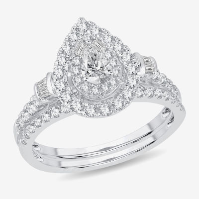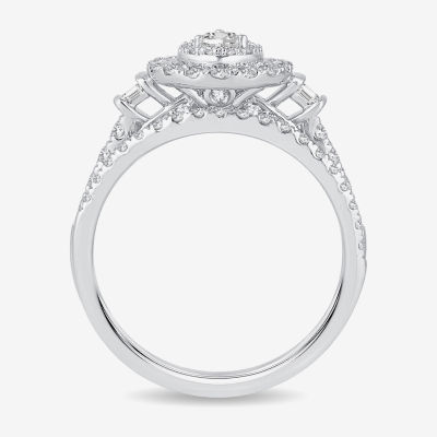 Womens 1 CT. T.W. Natural White Diamond 10K Gold Pear Side Stone Halo Bridal Set