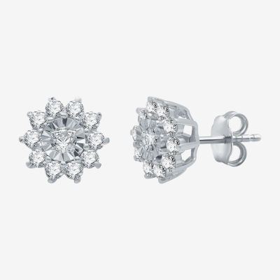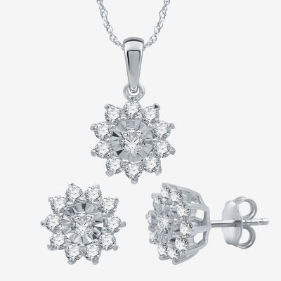 Womens 1 CT. T.W. Natural White Diamond Sterling Silver Flower 2-pc. Jewelry Set
