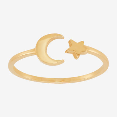 Womens 10K Gold Moon Round Star Band
