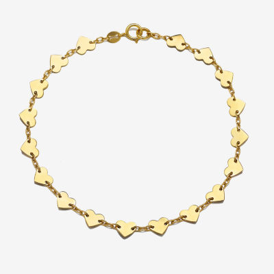 Womens 14K Gold Heart 7.5 Inch Link Bracelet