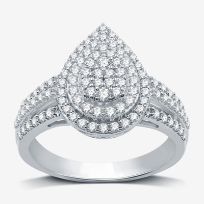 Womens 3/4 CT. T.W. Lab Grown White Diamond Sterling Silver Pear Halo Side Stone Cocktail Ring