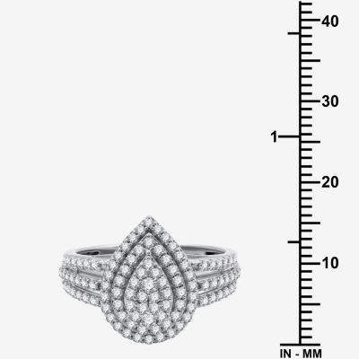 Womens 3/4 CT. T.W. Lab Grown White Diamond Sterling Silver Pear Halo Side Stone Cocktail Ring