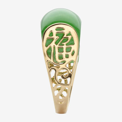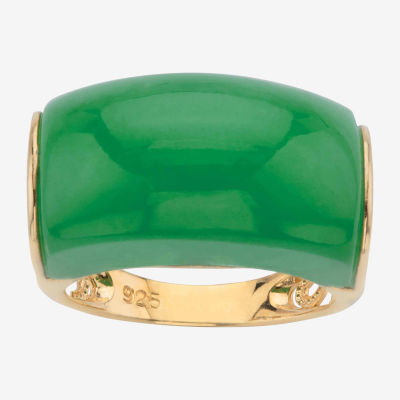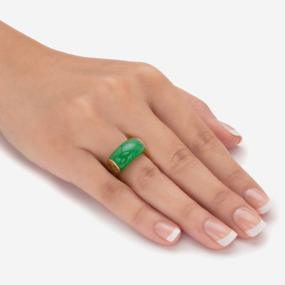 Womens 3MM Genuine Green Jade 14K Gold Over Silver Band