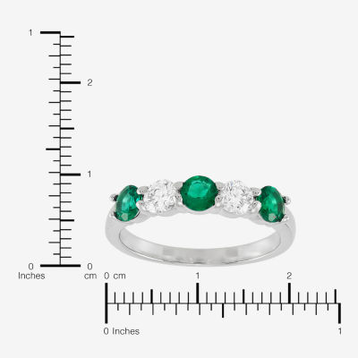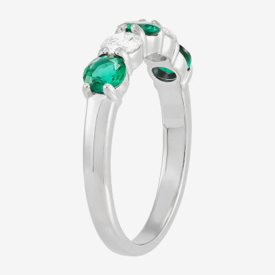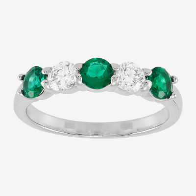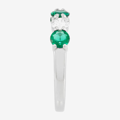 Womens 4MM Lab Created Gemstone & 1/2 CT. T.W. Lab-Grown Diamond Sterling Silver Round 5-Stone Band