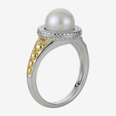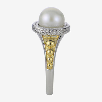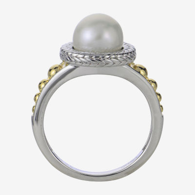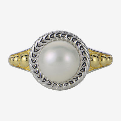 Womens 8-8.5MM White Cultured Freshwater Pearl 14K Two Tone Gold Over Silver Cocktail Ring