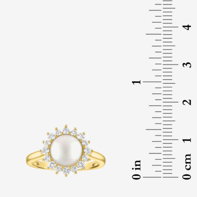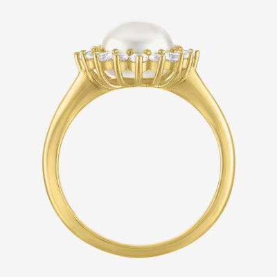 Womens 8MM White Cultured Freshwater Pearl 14K Gold Over Silver Halo Cocktail Ring