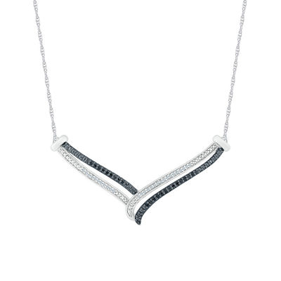Womens Black Diamond Sterling Silver 18 Inch Chevron Necklace