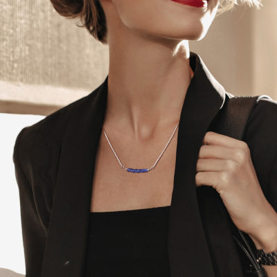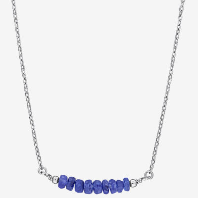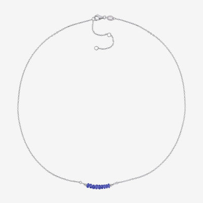 Womens Blue Sapphire Sterling Silver 16 1/2 Inch Beaded Necklace