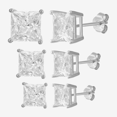 Womens Cubic Zirconia Sterling Silver Round 3 Pair Earring Set