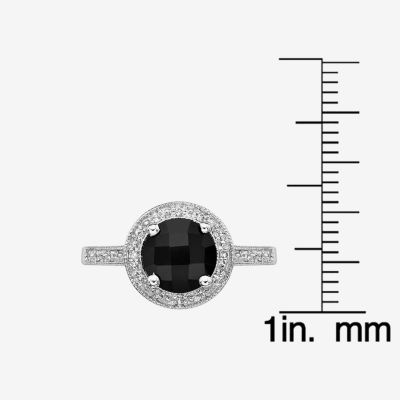 Womens Diamond Accent Genuine Black Onyx Sterling Silver Halo Cocktail Ring