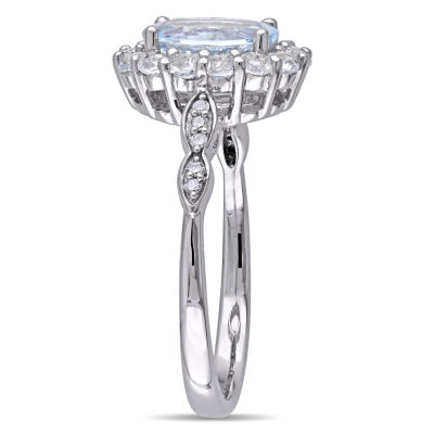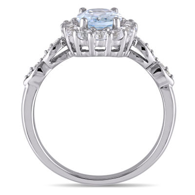 Womens Diamond Accent Genuine Blue Aquamarine 14K Gold Oval Cocktail Ring