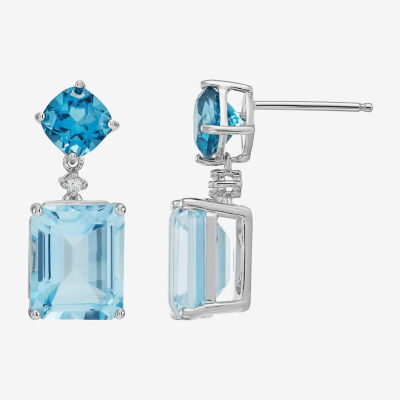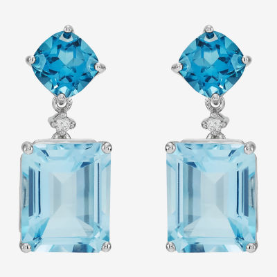 Limited Quantities! Womens Diamond Accent Genuine Blue Topaz Sterling Silver Drop Earrings
