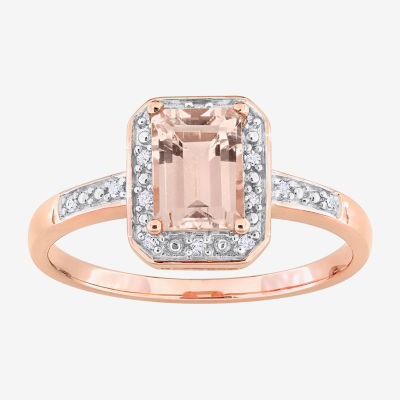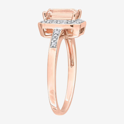 Womens Diamond Accent Genuine Pink Morganite 18K Rose Gold Over Silver Halo Cocktail Ring