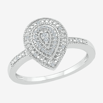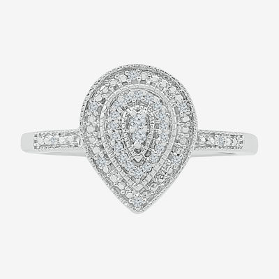 Womens Diamond Accent Natural White Diamond Sterling Silver Pear Halo Engagement Ring