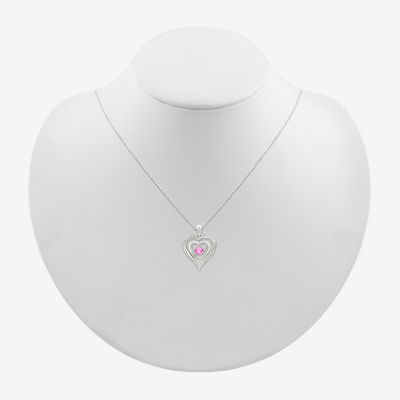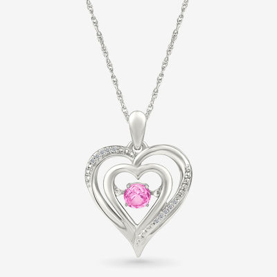 Womens Diamond Accent Lab Created Pink Sapphire Sterling Silver Heart 18 Inch Pendant Necklace