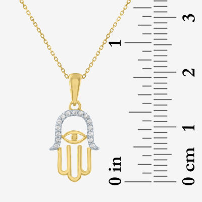 Womens Diamond Accent Natural White Diamond 10K Gold Hamsa 18 Inch Pendant Necklace