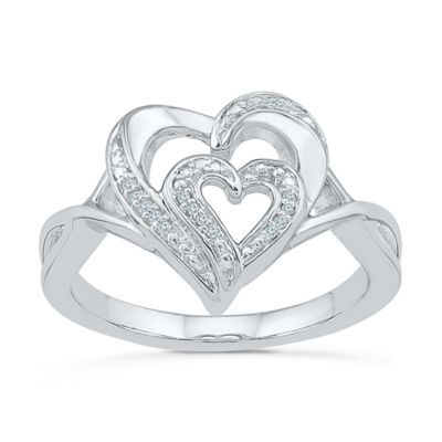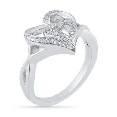 Womens Diamond Accent Natural White Diamond Sterling Silver Heart Cocktail Ring