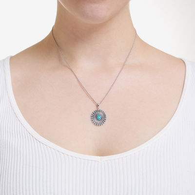 Womens Enhanced Blue Turquoise Sterling Silver Round 18 Inch Pendant Necklace