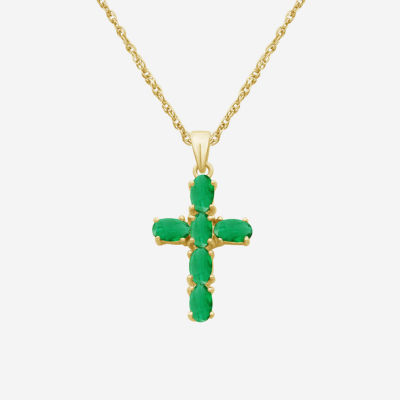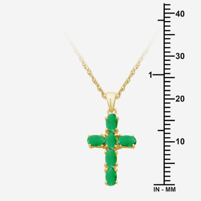 Womens Gemstone 10K White Gold Cross Oval 18 Inch Pendant Necklace