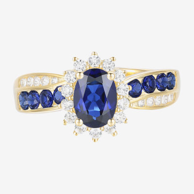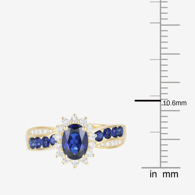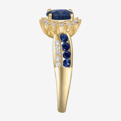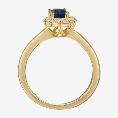 Womens Gemstone 14K Gold Over Silver Halo Side Stone Cocktail Ring