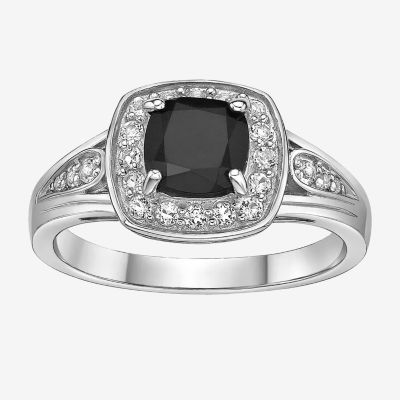 Womens Genuine Black Onyx Sterling Silver Cushion Halo Cocktail Ring