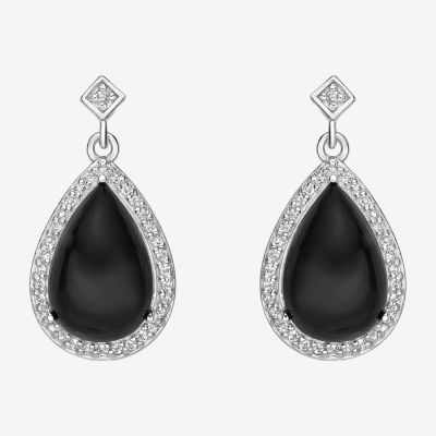 Womens Genuine Black Onyx Sterling Silver Drop Earrings