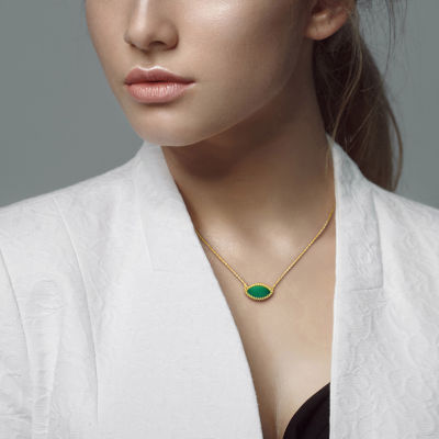 Womens Genuine Green Chalcedony 18K Gold Over Silver 17 Inch Pendant Necklace