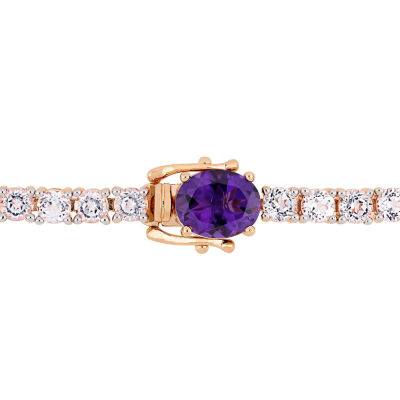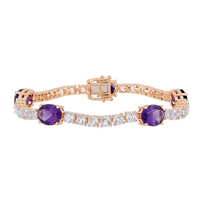 Womens Genuine Purple Amethyst 18K Rose Gold Over Silver Tennis Bracelet