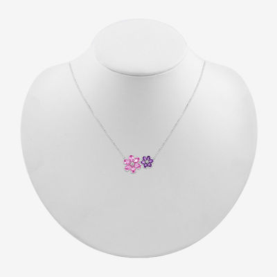 Womens Genuine Purple Amethyst Sterling Silver Flower 18 Inch Pendant Necklace
