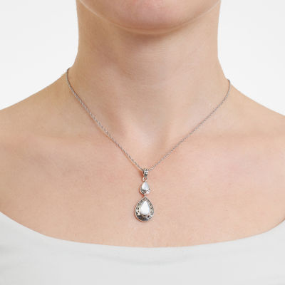 Womens Genuine White Mother Of Pearl Sterling Silver 18 Inch Pendant Necklace