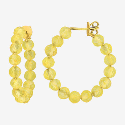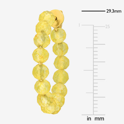 Womens Genuine Yellow Citrine 18K Gold Over Silver 26mm Hoop Earrings