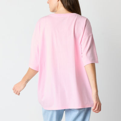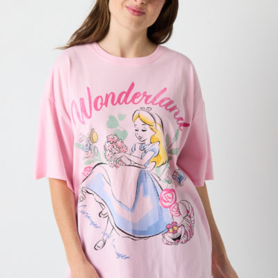Womens Juniors Crew Neck Short Sleeve Oversized Alice in Wonderland Graphic T-Shirt