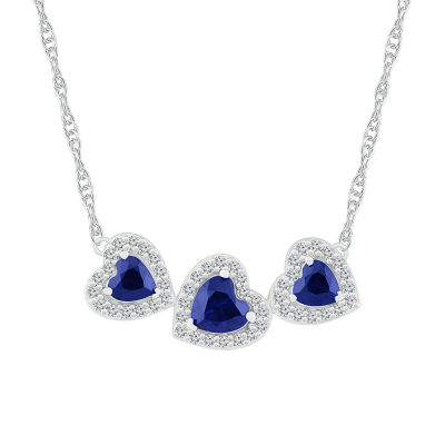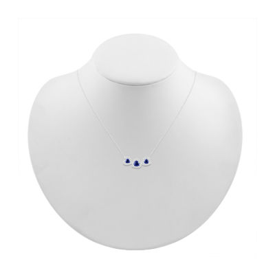 Womens Lab Created Blue Sapphire Sterling Silver Heart 17 Inch Pendant Necklace