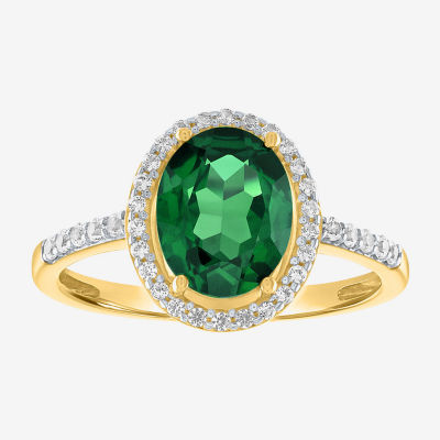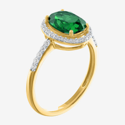 Womens Lab Created Green Emerald 10K Gold Cocktail Ring