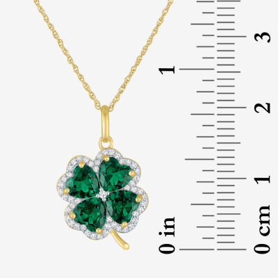 Womens Lab Created Green Emerald 14K Gold Over Silver Clover 16 Inch Pendant Necklace