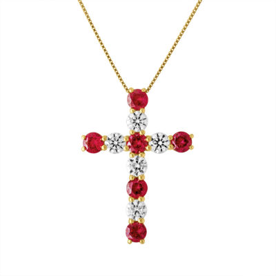 Womens Lab Created Red Ruby 10K Gold Cross 18 Inch Pendant Necklace